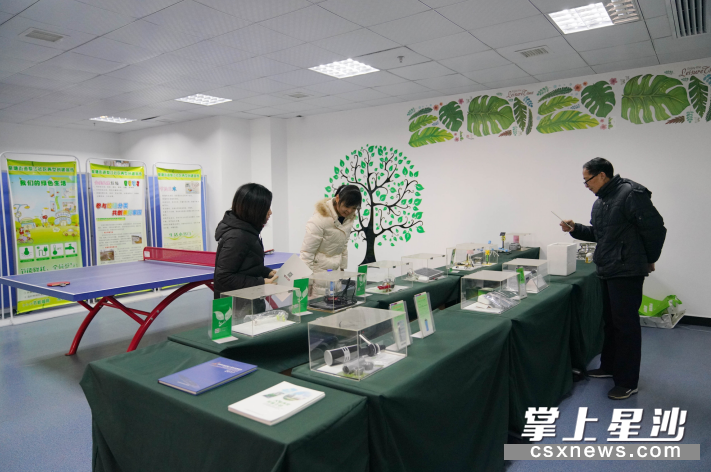 走进位于梨江社区服务中心二楼的两型宣教基地,“变废为宝吧”里,由废弃机械零部件制成的钢铁艺术品栩栩如生;两型超市内,居民垃圾分类后可兑换的礼品琳琅满目;两型艺术生活体验室、资源展示厅、学习交流厅里,前来参观的居民热烈讨论互动……