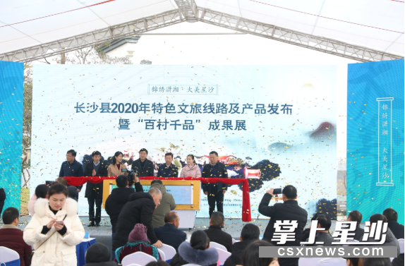 1月4日上午,长沙县2020年特色文旅线路产品发布暨“百村千品”成果展活动在果园镇浔龙河・湖湘民俗园举行,现场发布了三条冬季精品旅游线路,展出土蜂蜜、风吹肉干、红薯片、小花片等众多“百村千品”,让大家既饱眼福,又饱口福。