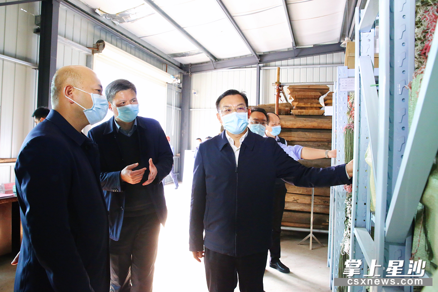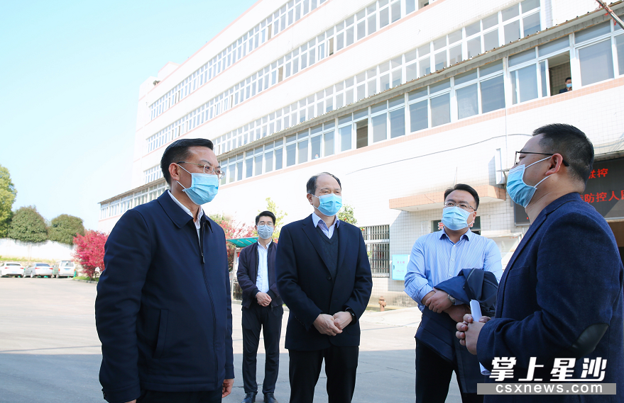 图为沈裕谋在湖南帝亿生物科技有限公司调研督导企业疫情防控和复工复产工作。曾诗怡 摄