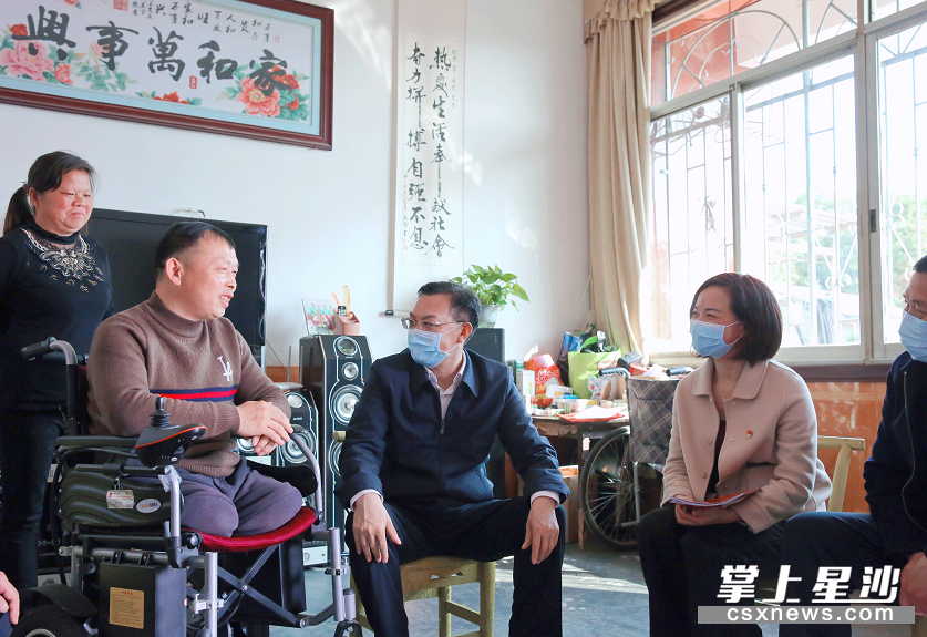 走进唐田新村建档立卡贫困户常文武家,沈裕谋与其亲切交谈,了解其生活状况和政府帮扶举措是否落实到位。常文武因2010年车祸造成高位截肢,无法从事体力劳动,常年需妻子照顾。本人平时爱好唱花鼓戏,多次参加比赛并获奖;同时他还热心公益,积极参加公益活动。得知他已于2017年脱贫,对帮扶举措十分满意后,沈裕谋很是高兴,勉励他坚定生活信心,保持乐观心态,在政府帮助下,依靠勤劳的双手实现稳定脱贫。