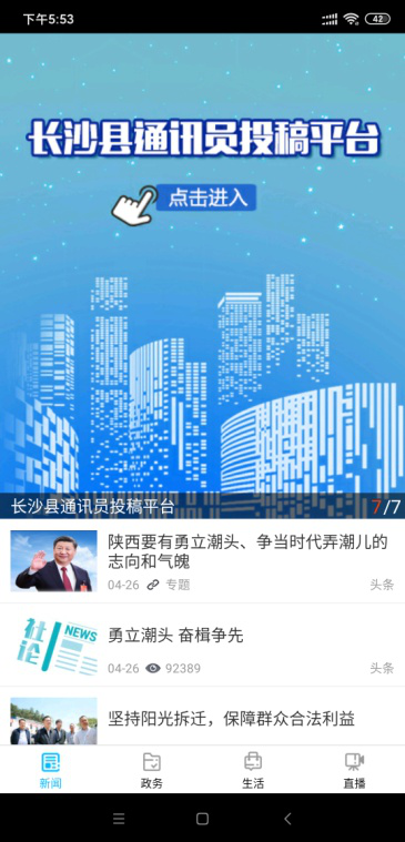 (3)用户可登陆掌上星沙APP,点击首页幻灯登陆通讯员投稿平台。