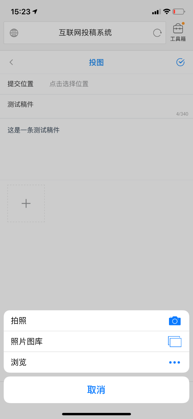 ·投图:通讯员通过传图功能将本地图片上传到系统中,可以上传多个单图也可以将多图成组上传。上传的图片格式支持:jpg、jpeg、bmp、png、gif,其他图片格式不支持。