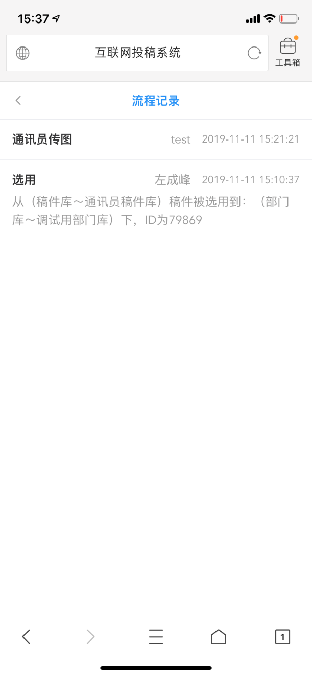 如果当前通讯员稿件已经被选用,它的流程记录如下: