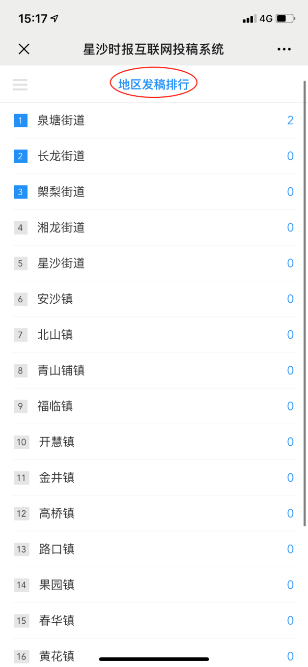 ·地区发稿排行:根据通讯员所在地区的的总发稿数量进行统计并进行排行。