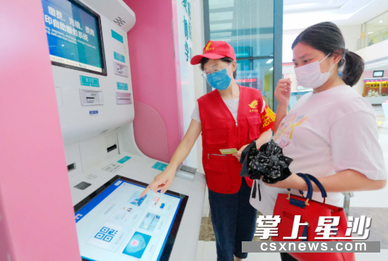 在长沙县妇幼保健院,黄宇在自助服务系统前引导市民挂号。章帝 摄
