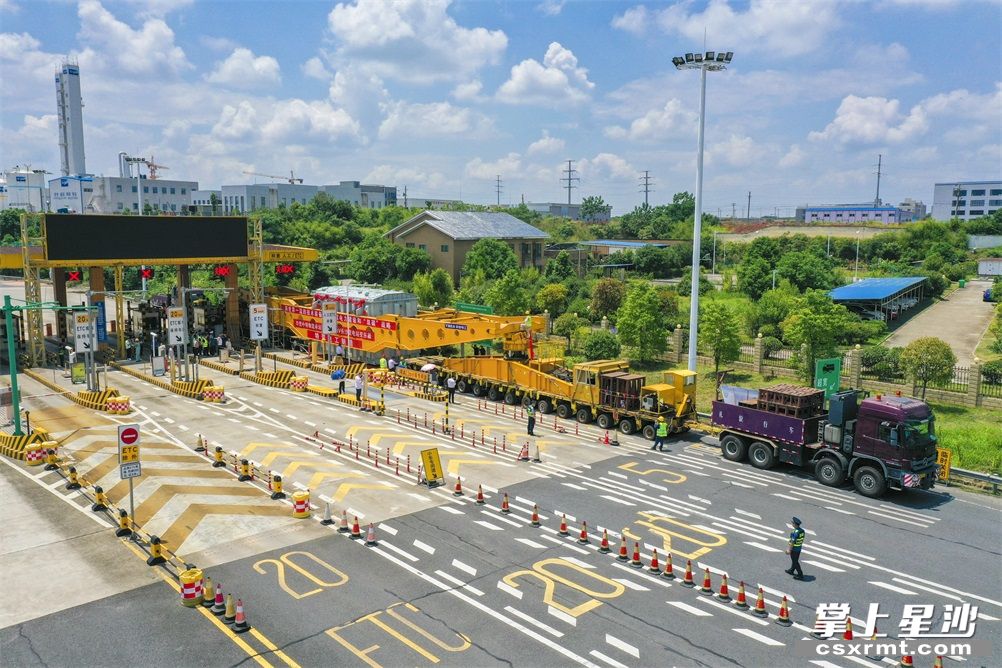 载着特高压变压器的运输车正在通过收费站。章帝 摄