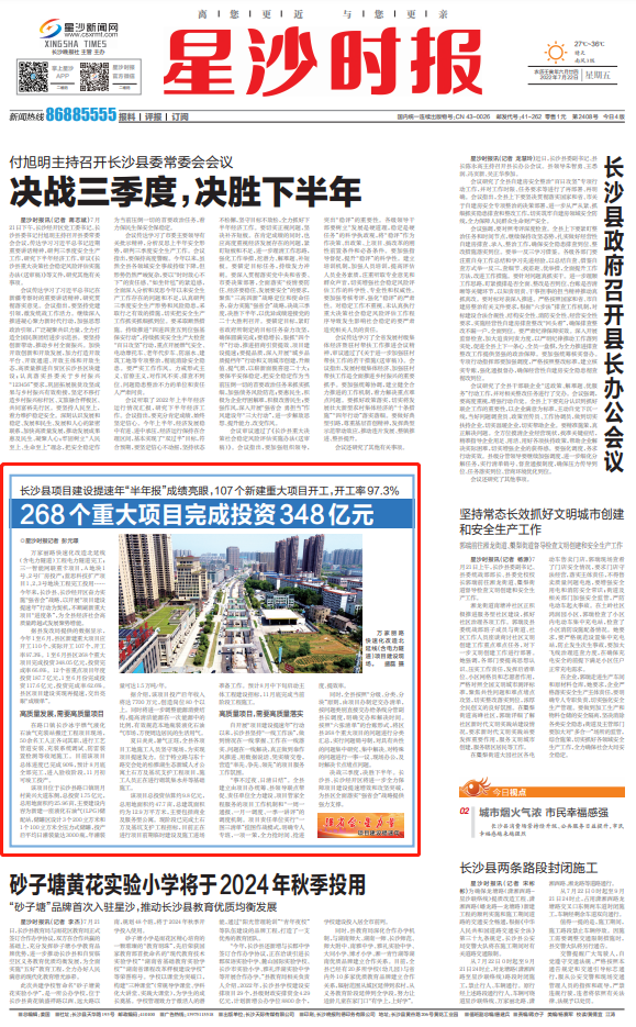 决战三季度,决胜下半年。长沙县、长沙经开区将进一步全力保障项目建设提速增效和攻坚突破,为县区全面落实“强省会”战略提供强力支撑。