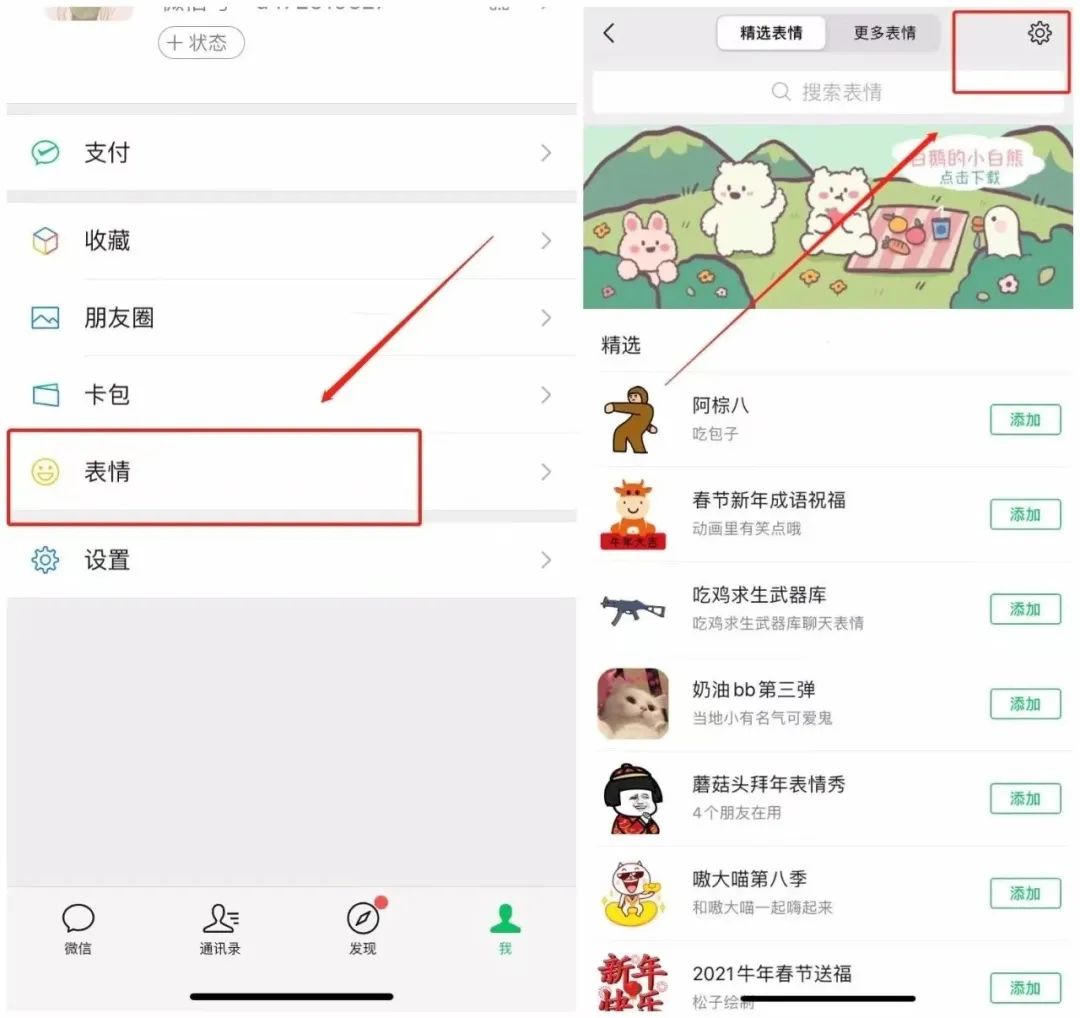 第二步:进入微信-[我]的界面,点[表情]按钮
