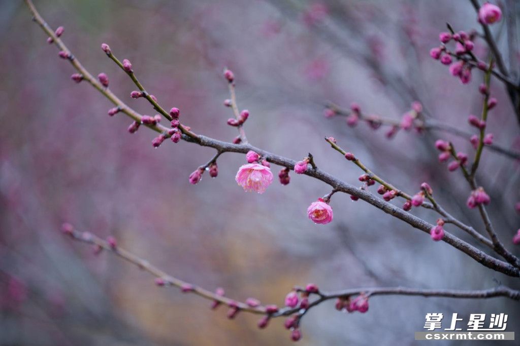 松雅湖畔红梅吐蕊迎春盛开