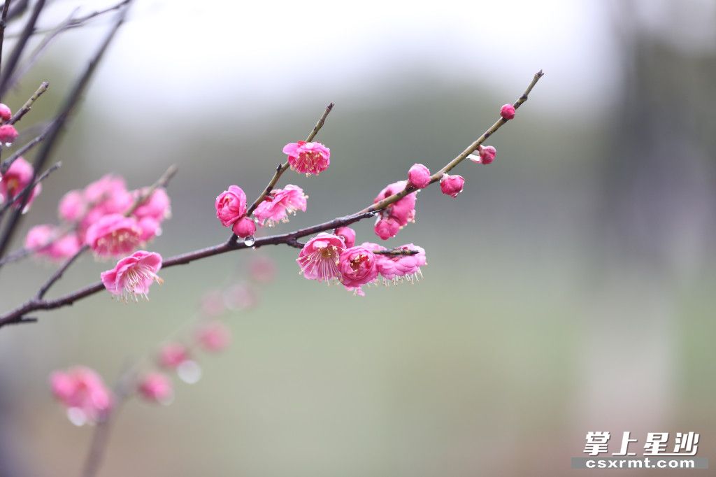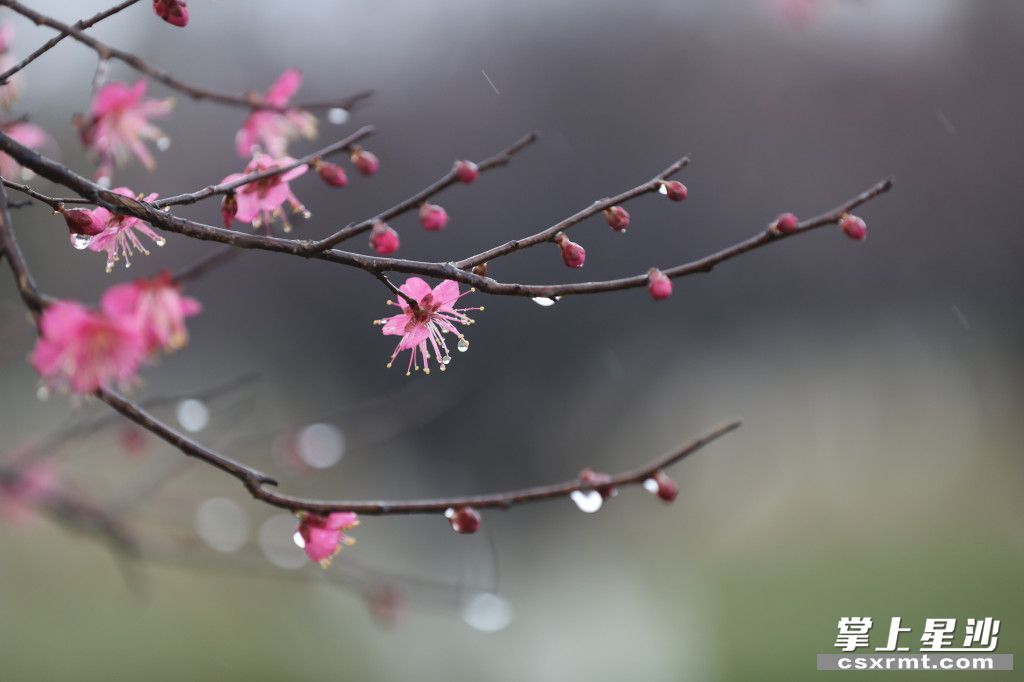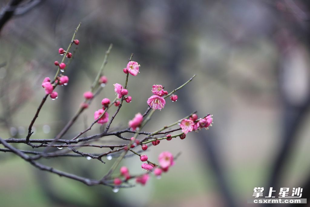 ▲雨中的梅花悄然绽放,花间枝头挂着一颗颗晶莹的水珠,使梅花显得更加娇艳醉人。