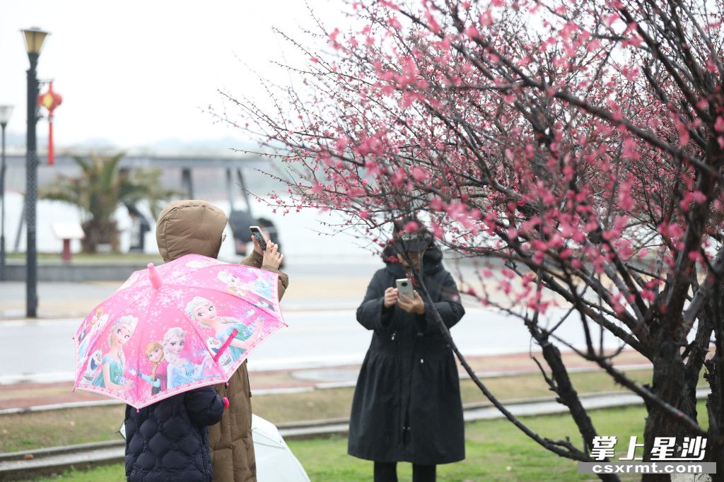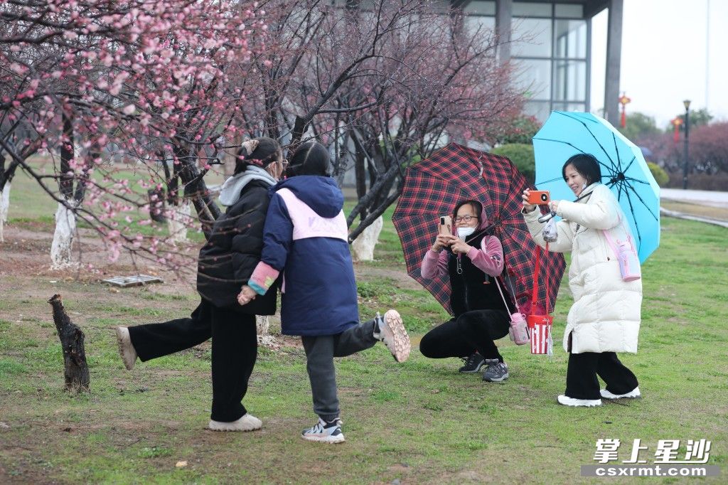 ▲连日来,长沙县虽阴雨连绵,但依旧挡不住人们走出家门,共赴2023第一场花事。市民们在梅林间穿梭观赏,不时停下拍照,脸上洋溢着惬意的笑容。