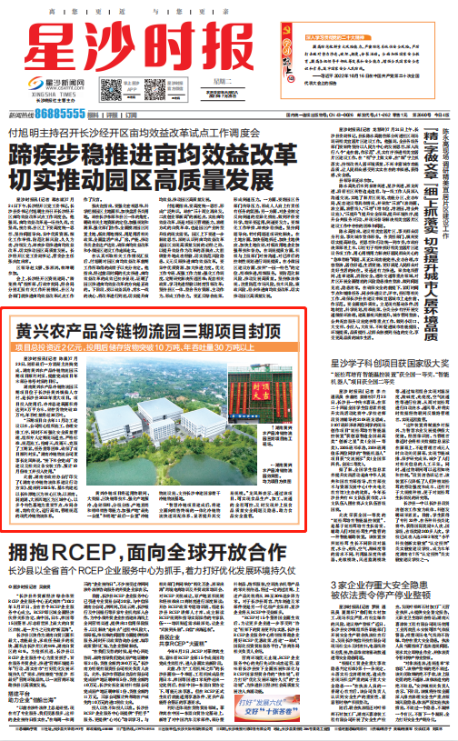黄兴冷链项目将运用物联网、大数据、区块链等技术,强化产地预冷、仓储保鲜、分级分拣、产地直销和错峰销售等能力,加强产地“最先一公里”和销地“最后一公里”冷链物流设施,支持长沙申建国家骨干冷链物流基地。