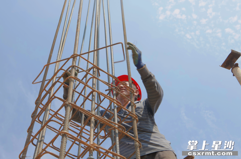 午后,记者走进该项目施工现场,一股热浪迎面扑来。在轧机、切割机等一系列高温设备的加持下,现场地表环境温度高达40摄氏度以上。面对“烤”验,一线施工人员一丝不苟紧张忙碌。他们头戴安全帽,身穿长袖长裤工作服,一串串汗珠顺着脸颊滚落,衣服早已被汗水浸湿。