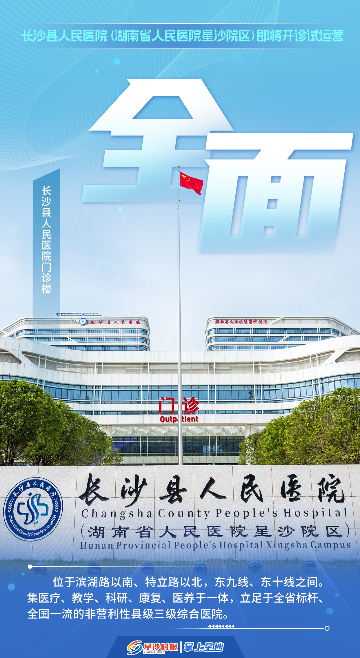 海报 | 长沙县人民医院(湖南省人民医院星沙院区)即将开诊试运营,“高大上”院区先睹为快
