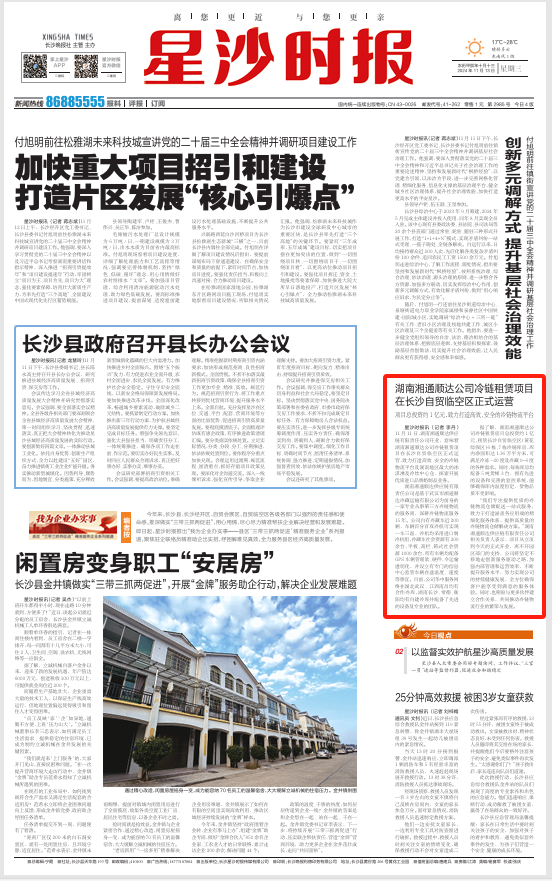 湖南湘通顺达公司冷链租赁项目 在长沙自贸临空区正式运营
