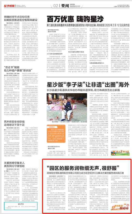 星沙时报12月22日讯(记者 李丹) “园区的服务润物细无声,给我们的感觉很舒服。”近日,湖南低空领航通用航空有限公司总经理张斌向记者讲述了公司在园区发展的历程,“就跟朋友一样,他们能感受到我们的困难,一起想办法,大家上下同心、同频共振,推动低空经济产业发展。”