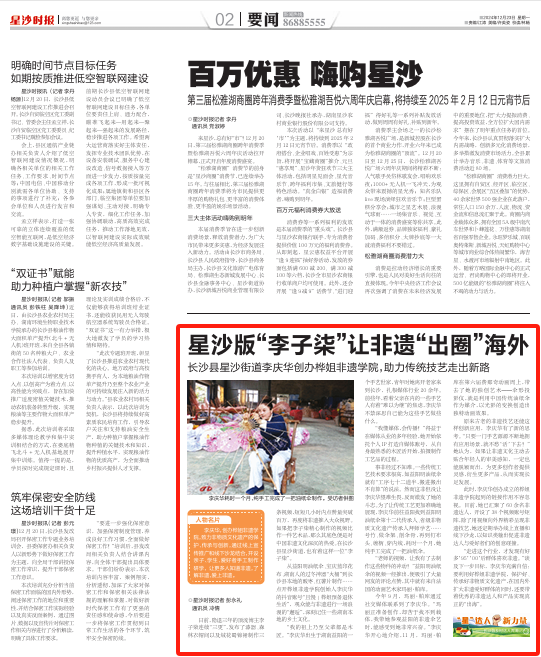 日前,隐退三年的顶流博主李子柒连续“三更”,发布了漆器、森林衣帽间以及绒花蜀锦裙制作三条视频,短短几小时内点赞量突破百万,再度将非遗推入大众视野。如果把李子柒精心制作的视频比作一件艺术品,那么其底色便是对中国非遗深沉的热爱。在长沙县星沙街道,也有着这样一位“李子柒”。