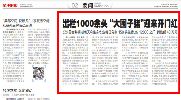 “我们的发展,离不开金井镇党委政府的帮助。”刘奇告诉记者,作为“金牌合伙人”,在金井镇党委政府的支持引导下,湖南天府生态农业引进了印遇龙院士团队作为技术顾问,利用现代科研力量挖掘大围子猪的遗传潜力,提高了品种的生存能力和肉质品质。改良后的大围子猪不仅保持了原有的风味,还具有更高的生长效率和适应性,这为扩大饲养规模创造了可能。预计今年一季度,湖南天府生态农业出栏生猪12000头左右(含仔猪),产值约1800万元,较去年同期增长10%左右。