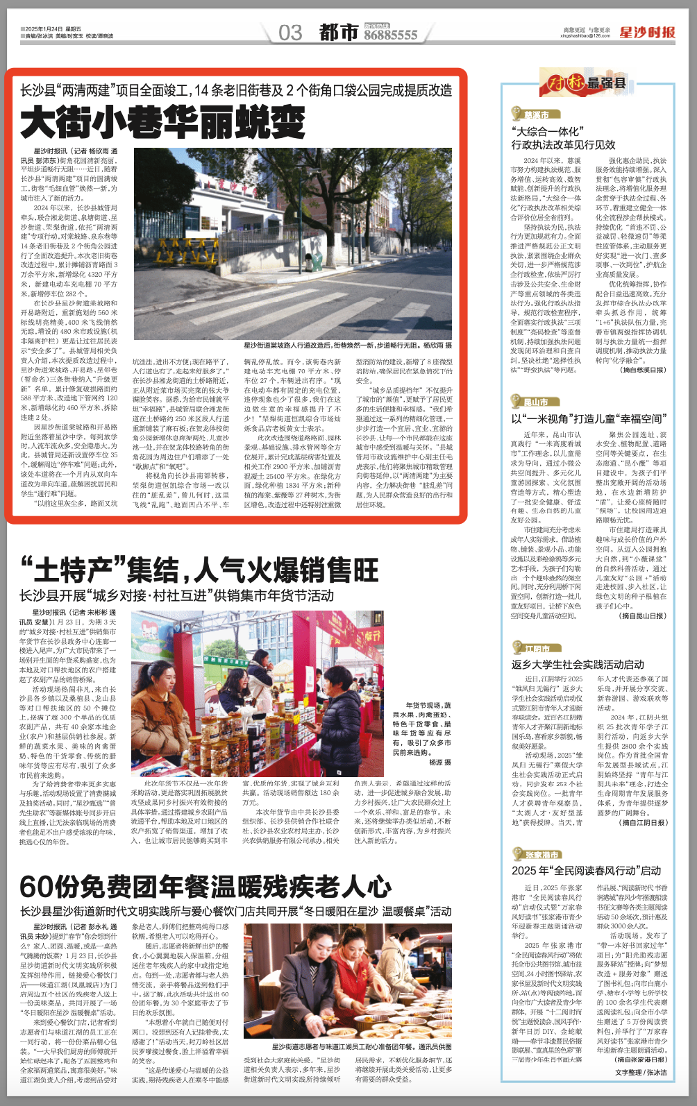 “城乡品质提档年”不仅提升了城市的“颜值”,更赋予了居民更多的生活便捷和幸福感。“我们希望通过这一系列的精细化管理,一步步打造一个宜居、宜业、宜游的长沙县,让每一个市民都能在这座城市中感受到温暖与关怀。”县城管局市政设施维护中心副主任毛虎表示,他们将聚焦城市精致管理向街巷延伸,以“两清两建”为主要内容,全力解决街巷“脏乱差”问题,为人民群众营造良好的出行和居住环境。