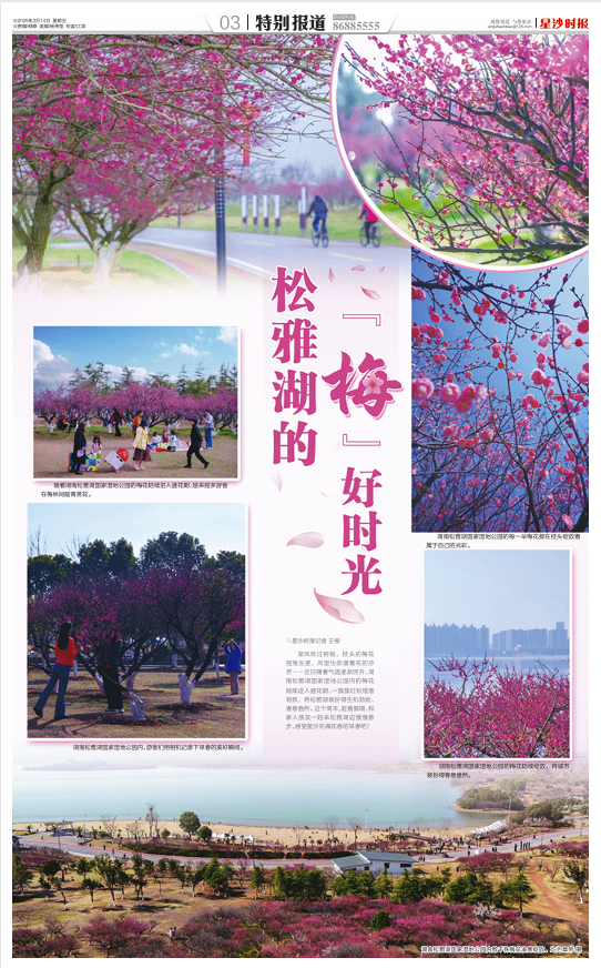 湖风吹过树梢,枝头的梅花摇曳生姿,风里也弥漫着花的芬芳……近日随着气温逐渐回升,湖南松雅湖国家湿地公园内的梅花陆续进入盛花期,一簇簇红粉错落有致,将松雅湖装扮得生机勃勃、春意盎然。这个周末,趁着假期,和家人朋友一起来松雅湖边慢慢散步,感受星沙充满花香的早春吧!