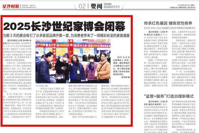 星沙时报2月24日讯(记者 张梓峰 吴俊贤)蛇年家居盛宴,展会精彩先行。2月23日,长沙自贸会展区新春后第一场展会——2025长沙世纪家博会在长沙国际会展中心闭幕。为期3天的展会吸引了众多家居品牌齐聚一堂,为消费者带来了一场精彩纷呈的家装盛宴。