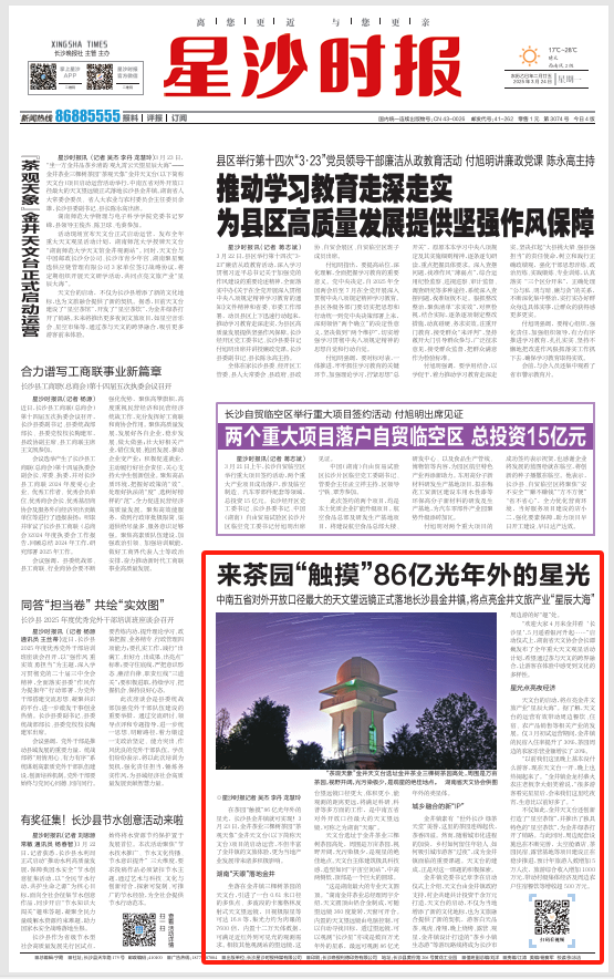 在茶园“触摸”86亿光年外的星光,长沙县金井镇就可实现!3月23日,金井茶业三棵树茶园“茶观天象”金井天文台(以下简称天文台)项目的启动运营,不但丰富了金井镇的文旅体验,更为当地产业发展带来诸多积极影响。