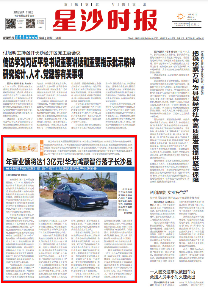 投资星沙 | 年营业额将达13亿元!华为鸿蒙智行落子长沙县