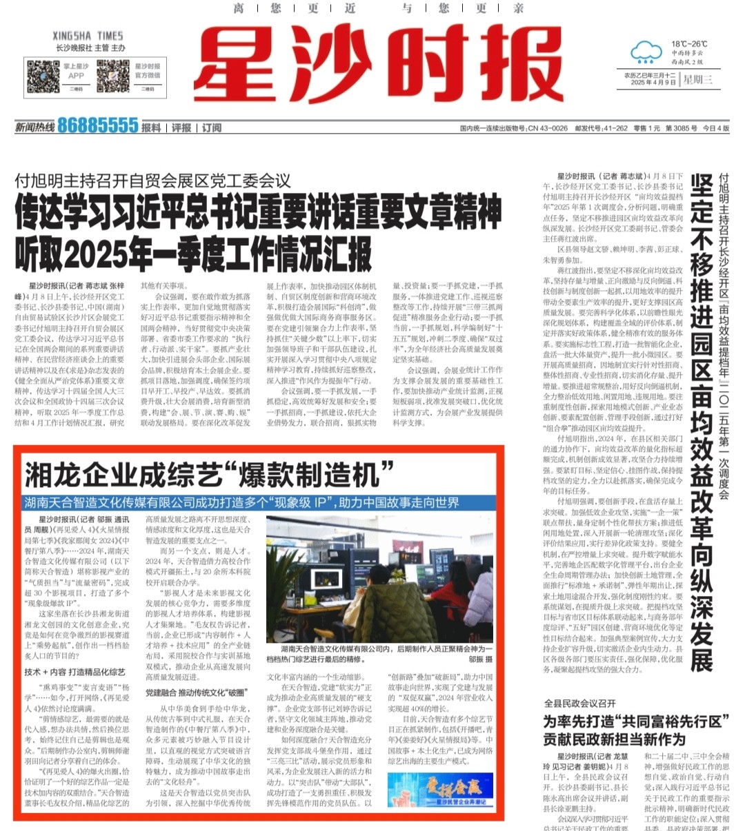 星沙时报4月8日讯(记者 邬振 通讯员 周靓)《再见爱人4》《火星情报局第七季》《我家那闺女2024》《中餐厅第八季》……2024年,湖南天合智造文化传媒有限公司(以下简称天合智造)堪称影视产业的“气质担当”与“流量密码”,完成超30个影视项目,打造了多个“现象级爆款IP”。