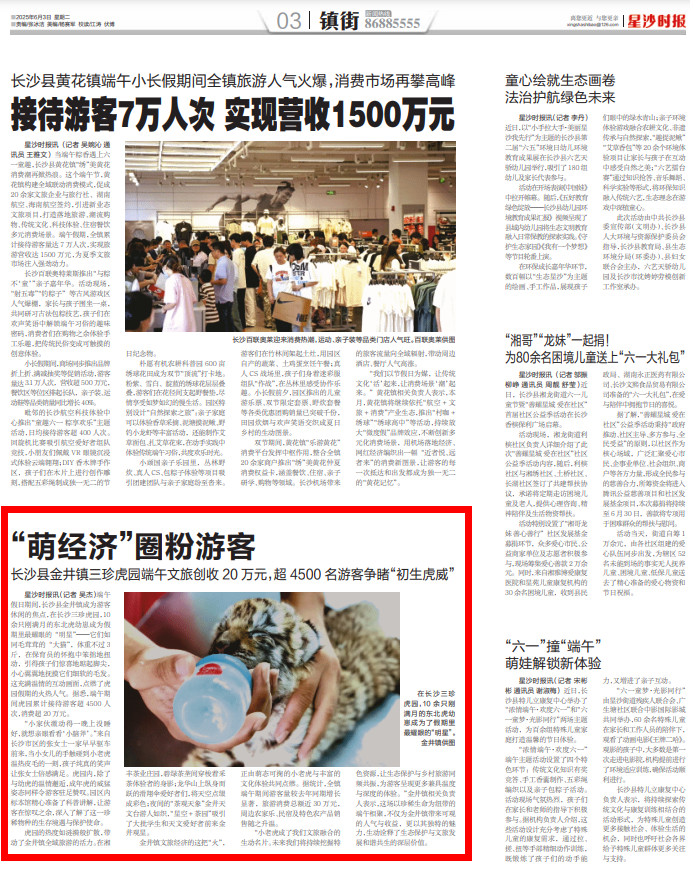 长沙县金井镇三珍虎园端午文旅创收20万元,超4500名游客争睹“初生虎威”