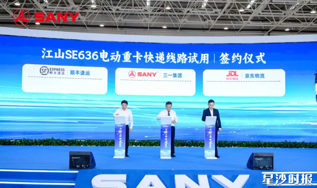湖南顺丰速运总经理顾颐杰表示,将与三一深化合作推动绿色供应链建设,完成从业务合作到生态共建的升级。京东政企湖南省区总经理刘沛则强调将从绿色供应链出发,通过技术协同加速新能源商用车规模化应用。