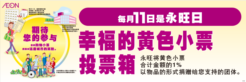 一张黄色小票,一份温暖心意。每月11日,永旺梦乐城及永旺超市的顾客只需将购物后的黄色小票投入不同的爱心捐赠箱,永旺将按消费金额的1%转化为等额物资,定向捐赠给各个助残机构,让每一笔日常消费都成为点亮特殊群体的希望之光。