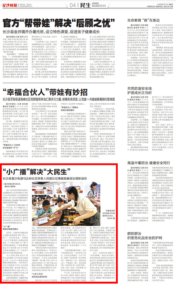 “看到社区请来专业机构负责教学,我们特别放心!”有家长认为,由专业教师、大学生志愿者和社区工作者组成的服务团队,为孩子们打造了一个安全、充实的暑期“避风港”。据了解,今年上半年,马达岭社区依托“小广播”开展人民建议日常征集、专题征集活动,居民参与小区治理比例提升至80%,矛盾纠纷发生率同比下降30%。