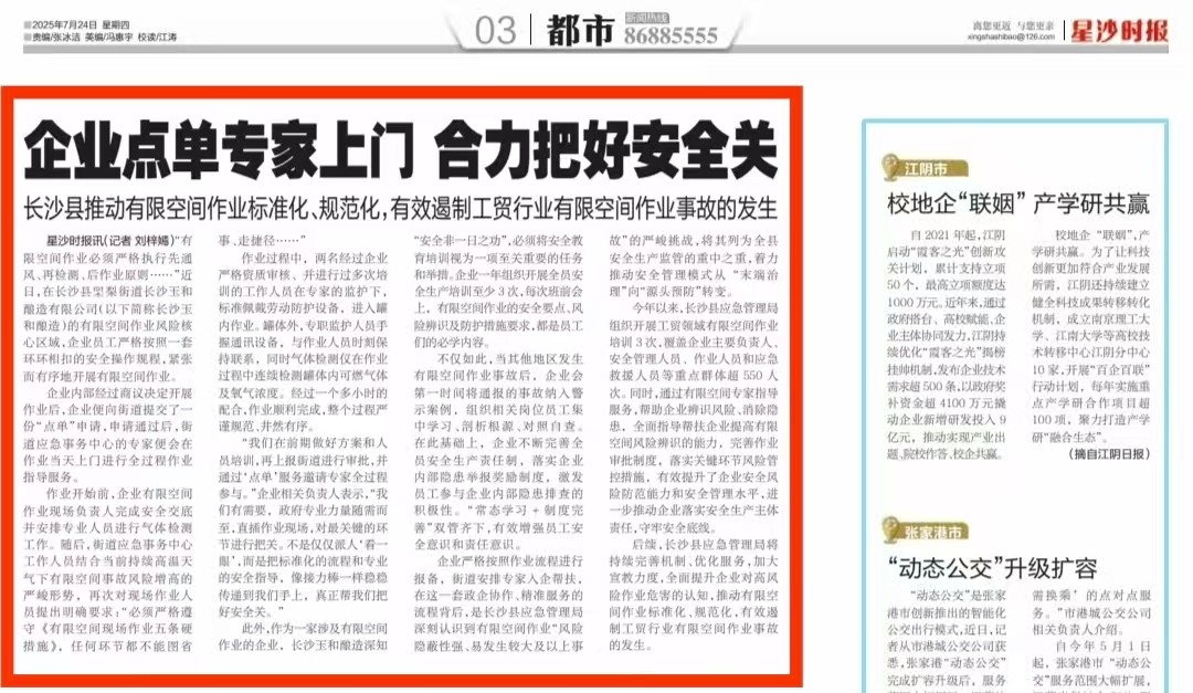 企业严格按照作业流程进行报备,街道安排专家入企帮扶,在这一套政企协作、精准服务的流程背后,是长沙县应急管理局深刻认识到有限空间作业“风险隐蔽性强、易发生较大及以上事故”的严峻挑战,将其列为全县安全生产监管的重中之重,着力推动安全管理模式从“末端治理”向“源头预防”转变。