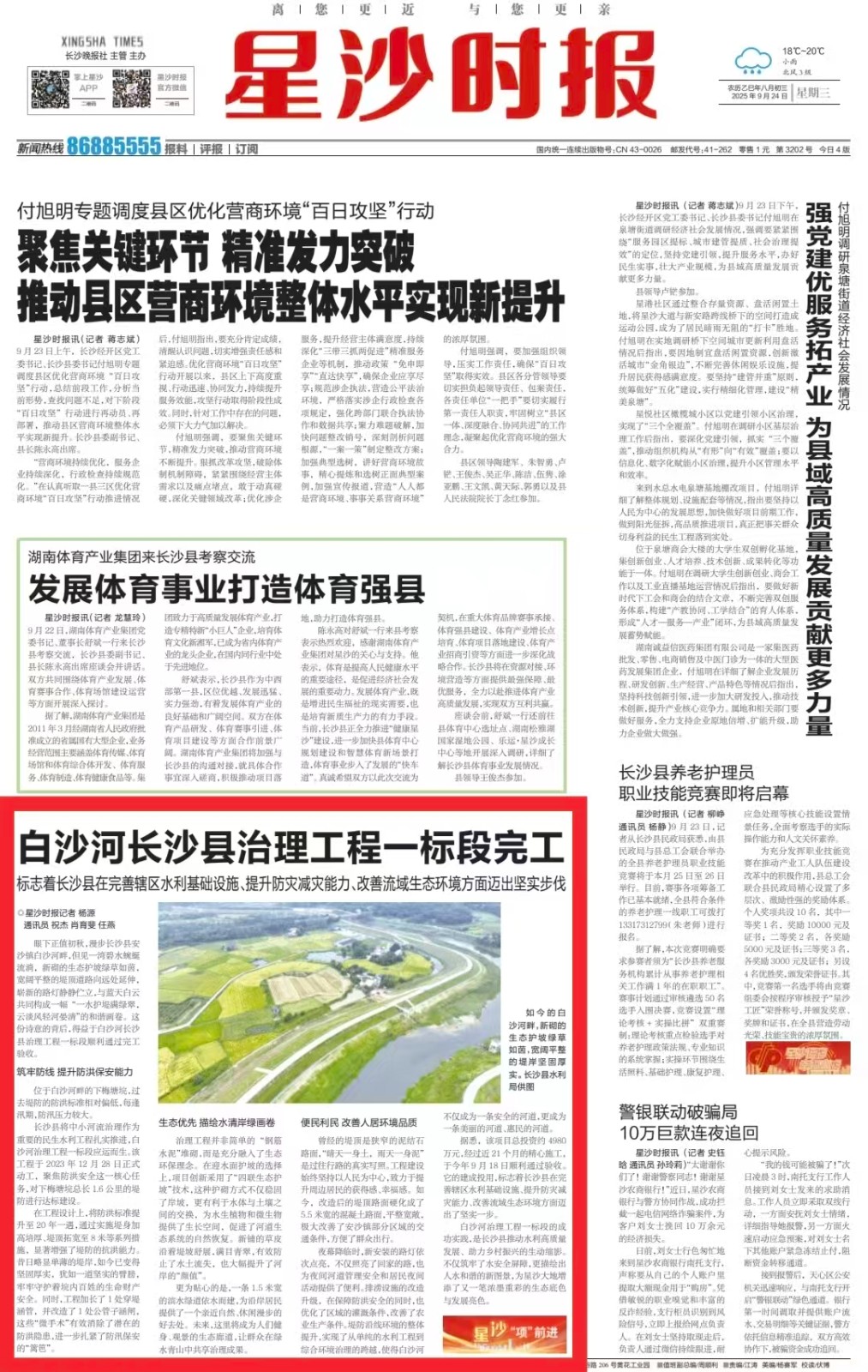 白沙河治理工程一标段的成功实践,是长沙县推动水利高质量发展、助力乡村振兴的生动缩影。不仅筑牢了水安全屏障,更描绘出人水和谐的新图景,为星沙大地增添了又一笔浓墨重彩的生态底色与发展亮色。