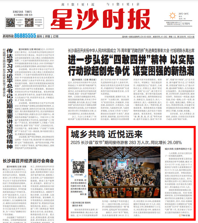 2025长沙县“双节”期间接待游客283万人次,同比增长26.08%