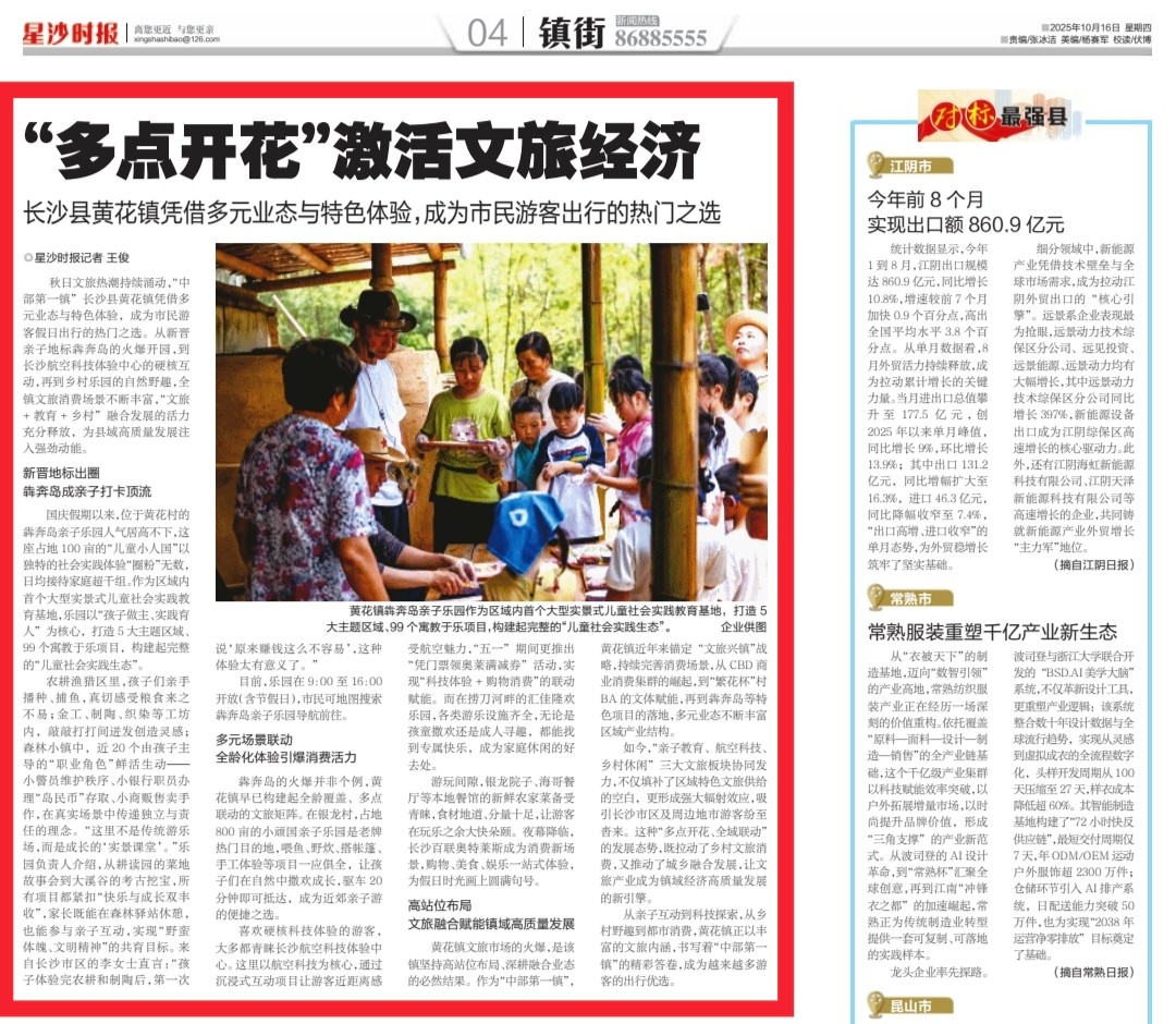 秋日文旅热潮持续涌动,“中部第一镇”长沙县黄花镇凭借多元业态与特色体验,成为市民游客假日出行的热门之选。从新晋亲子地标犇奔岛的火爆开园,到长沙航空科技体验中心的硬核互动,再到乡村乐园的自然野趣,全镇文旅消费场景不断丰富,“文旅+教育+乡村”融合发展的活力充分释放,为县域高质量发展注入强劲动能。
