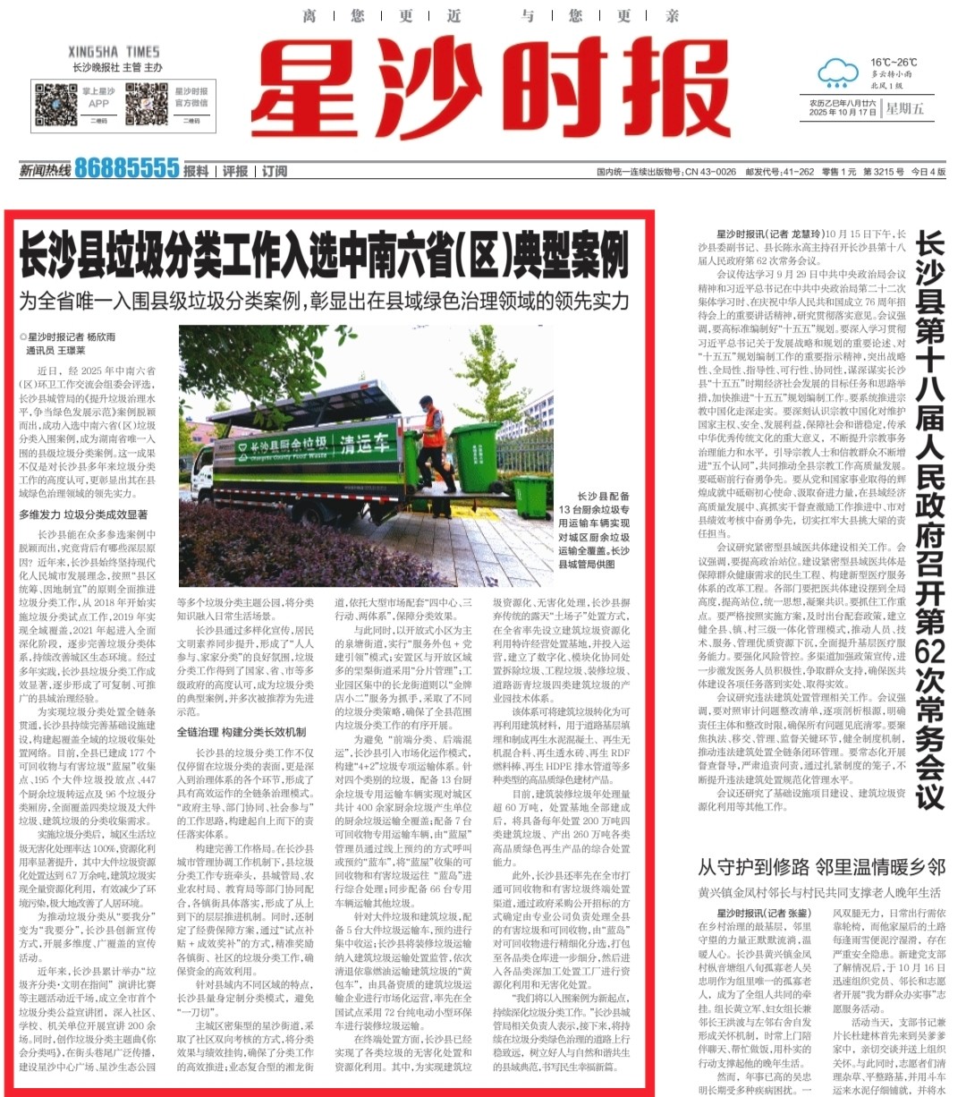 “我们将以入围案例为新起点,持续深化垃圾分类工作。”长沙县城管局相关负责人表示,接下来,将持续在垃圾分类绿色治理的道路上行稳致远,树立好人与自然和谐共生的县域典范,书写民生幸福新篇。