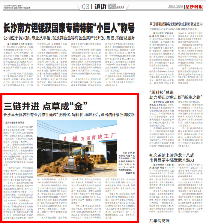 长沙县天健农机专业合作社通过“肥料化、饲料化、基料化”,蹚出秸秆绿色增收路