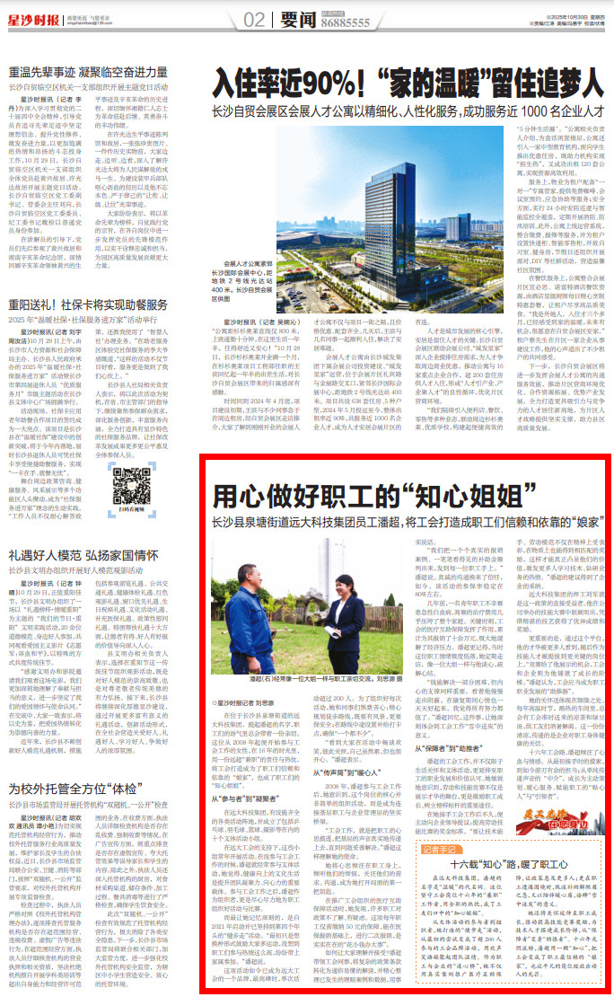 在位于长沙县泉塘街道的远大科技集团,提起潘超的名字,职工们的语气里总会带着一份亲切。这位从2008年起便开始参与工会工作的女性,在16年的时光里,用一份远超“兼职”的责任与热忱,将工会打造成为了职工们信赖和依靠的“娘家”,也成了职工们的“知心姐姐”。
