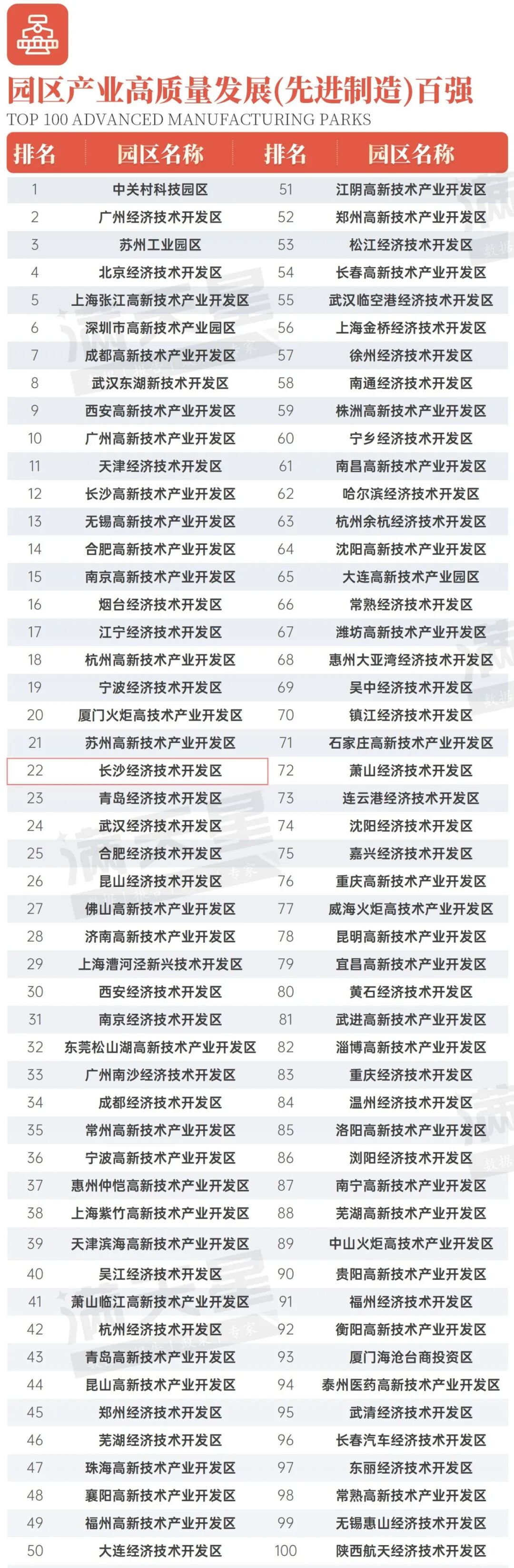 提升4位!长沙经开区位列全国园区高质量发展百强排名第31位