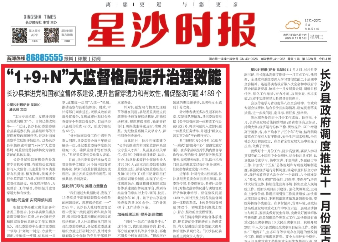 长沙县推进党和国家监督体系建设,提升监督穿透力和有效性,督促整改问题4189个
