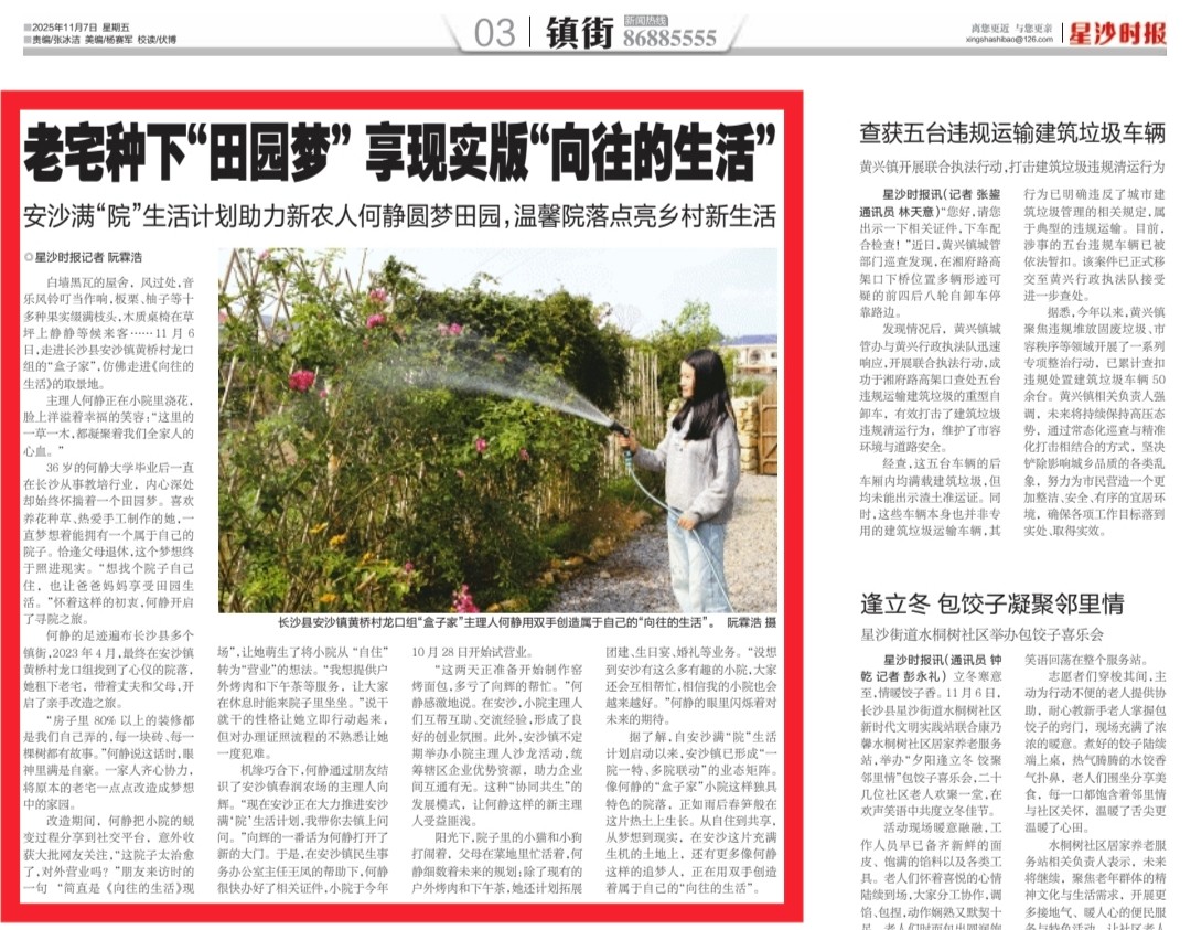 据了解,自安沙满“院”生活计划启动以来,安沙镇已形成“一院一特、多院联动”的业态矩阵。像何静的盒子家小院这样独具特色的院落,正如雨后春笋般在这片热土上生长。从自住到共享,从梦想到现实,何静在安沙镇找到了事业的新方向,也找到了生活的另一种可能。