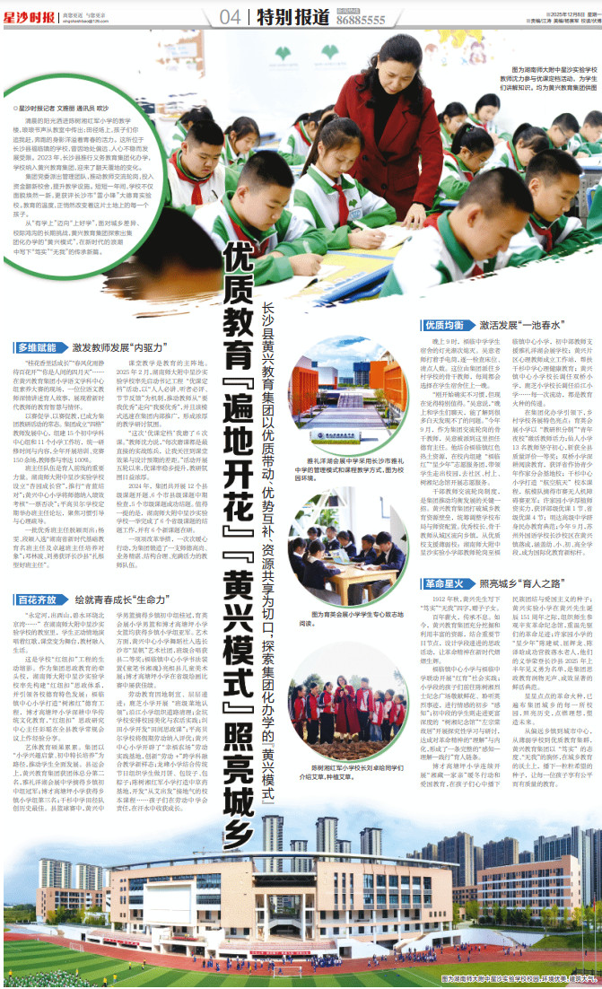 从“有学上”迈向“上好学”,面对城乡差异、校际鸿沟的长期挑战,黄兴教育集团探索出集团化办学的“黄兴模式”,在新时代的浪潮中写下“笃实”“无我”的传承新篇。