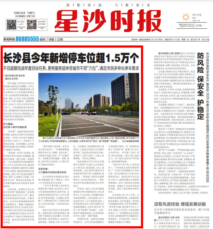 民呼我应,破解“一位难求”!长沙县2025年新增超1.5万个泊位