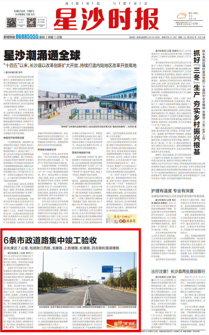 星沙时报12月8日讯(记者 李丹)12月8日,记者从长沙自贸临空区了解到,该片区6条市政道路项目已集中竣工验收,即将实现全面通车,推动片区交通路网再升级。