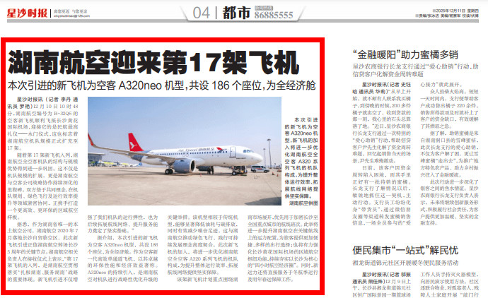 该架新飞机计划重点围绕湖南市场展开,优先用于加密长沙至全国重点城市的航线班次。此举将进一步提升湖南航空在关键航线上的运力配置,为旅客提供更加便捷、多样的出行选择;也将有力强化长沙黄花国际机场的区域航空枢纽功能,持续夯实以长沙为核心的“四小时航空经济圈”。同时,新运力还将直接服务于冬航季运行及明年春运保障工作。