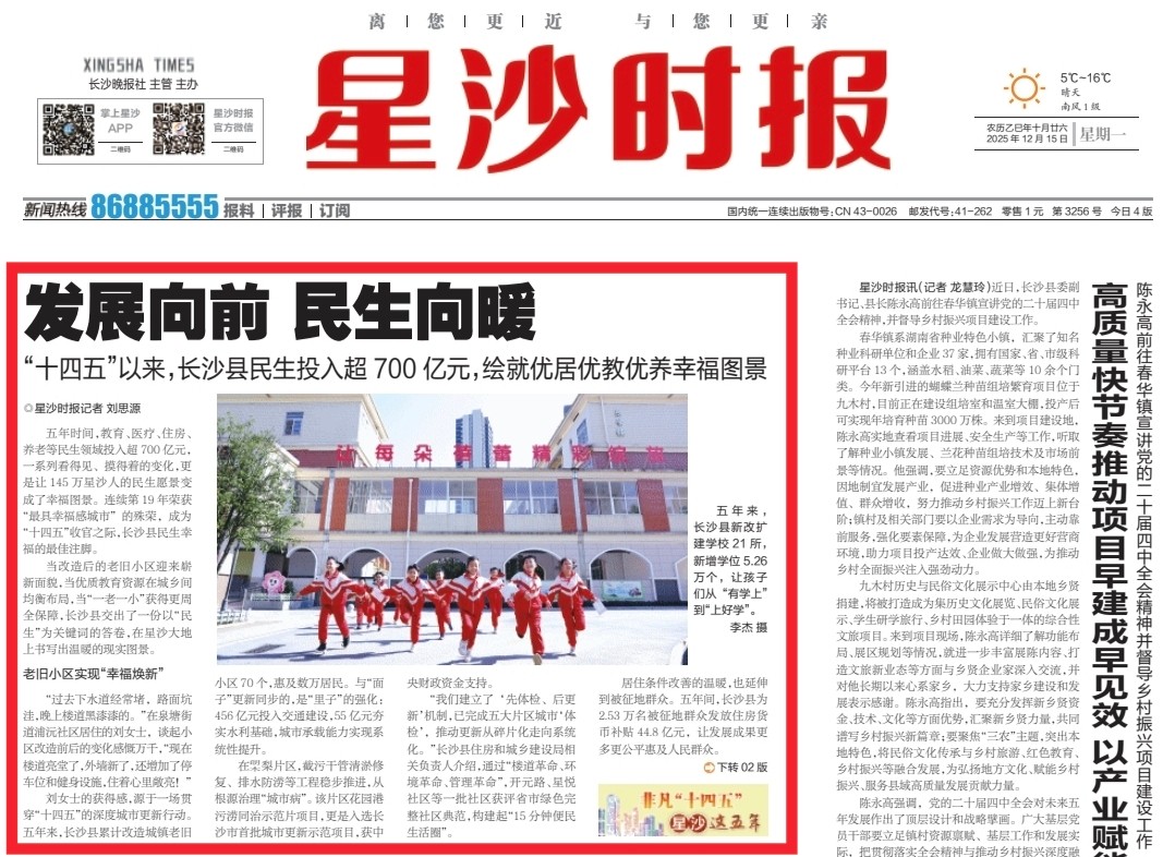 当改造后的老旧小区迎来崭新面貌,当优质教育资源在城乡间均衡布局,当“一老一小”获得更周全保障,长沙县交出了一份以“民生”为关键词的答卷,在星沙大地上书写出温暖的现实图景。