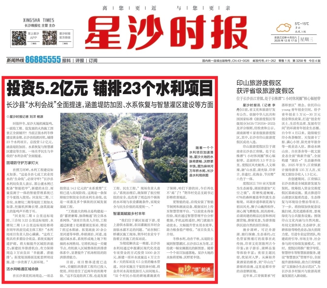 冬修水利,功在千秋。从堤防长城到智慧灌区,长沙县以水为笔,正绘就一幅安澜惠民的新图景。随着一个个项目加速落地,星沙大地的水脉将更畅、沃野更丰饶。