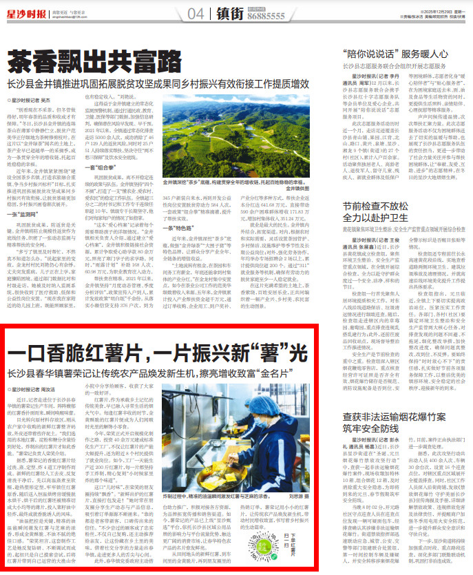 此外,春华镇党委政府主动搭台助力推广,积极对接各方资源,为品牌拓宽传播和销售渠道。如今,薯荣记的产品已上线“星沙甄选”平台,依托长沙县区域公用品牌的影响力与平台流量优势,触达更广阔的消费市场,让春华特色农产品的名片愈发鲜亮。