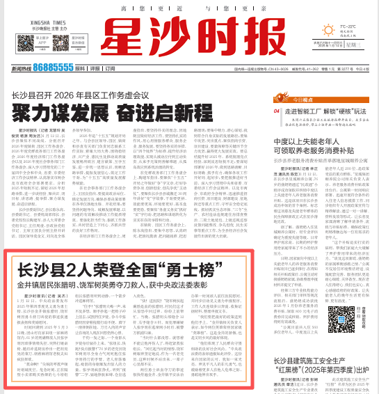 星沙时报1月13日讯(记者 吴杰)1月12日,中央政法委发布2025年第四季度见义勇为勇士榜,长沙县金井镇张腊明、饶军树因勇斗持刀凶徒的事迹获通报表扬和奖励慰问。